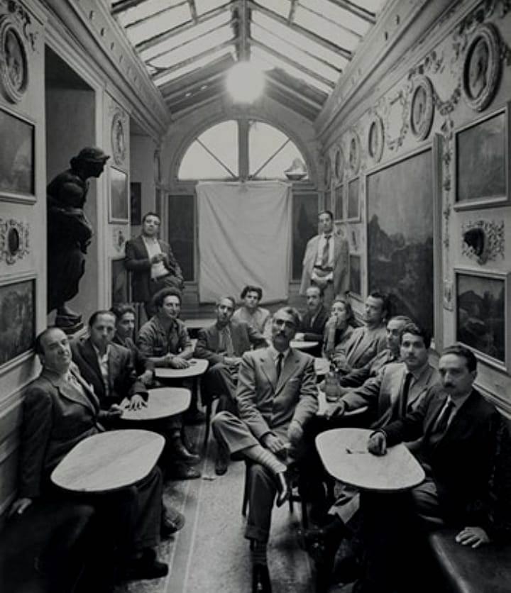 La mitica Sala Omnibus, foto di gruppo, Flaiano e tanti altri artisti, autori e poeti.